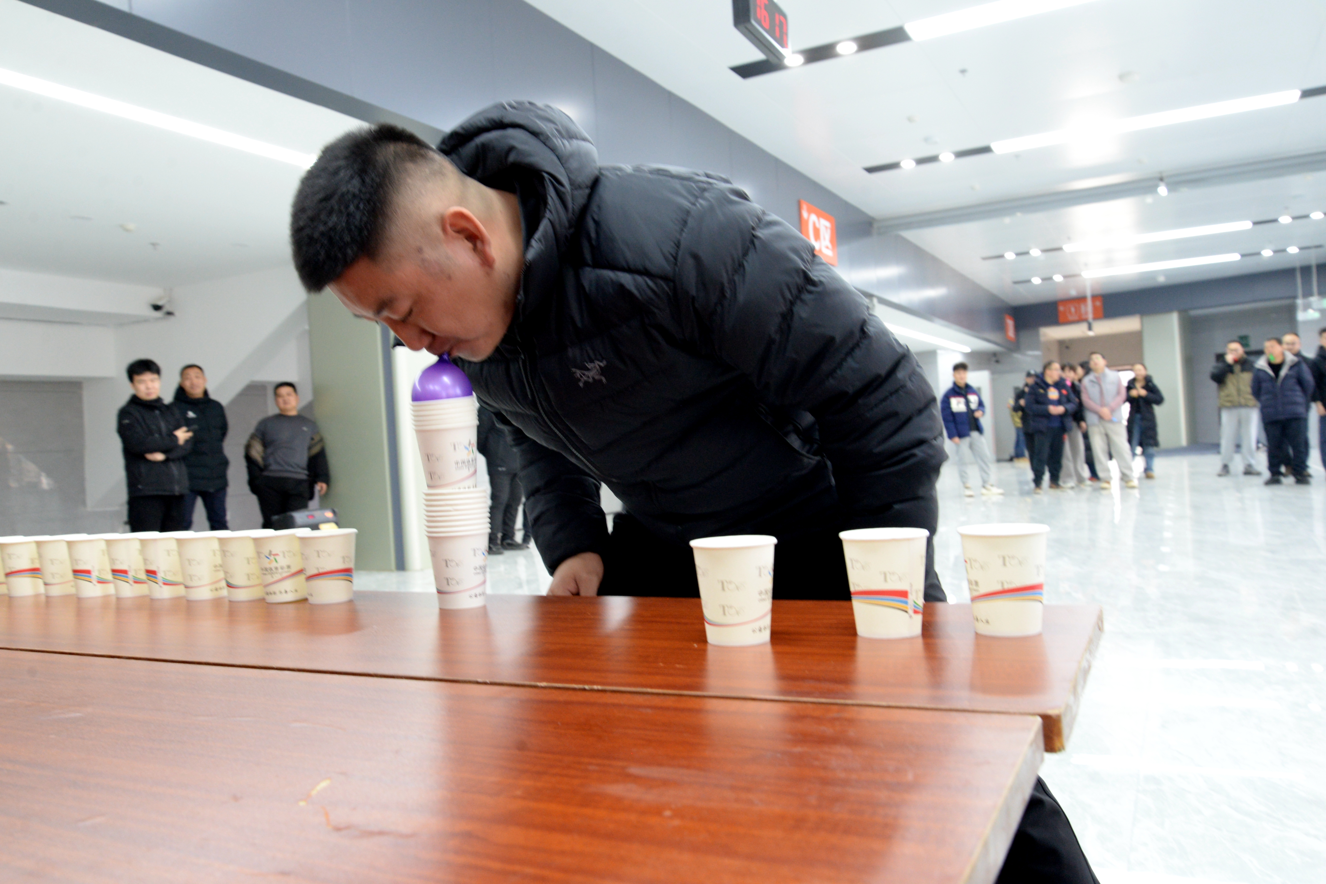 本次主题党日活动紧扣“党建+体育”融合理念,精心设置蒙眼趣味竞走、吸管巧饮挑战、气球托杯叠高、乒乓精准投杯四大趣味竞技项目,既兼顾运动的趣味性与参与性,更注重团队协作精神的培养与党性修养的锤炼。参加活动的党员以抽签的形式组成5组,勠力同心、默契协作,在趣味竞技中比拼实力、增进情谊。蒙眼竞走时的稳步前行、吸管饮挑战中的凝神专注、气球托杯叠高时的小心翼翼、乒乓投杯时的精准发力,每一个环节都充满了欢声笑语与奋进力量,充分展现了党员奋勇拼搏、团结向上的优良作风,以及忠诚于党、服务人民的坚定信念。